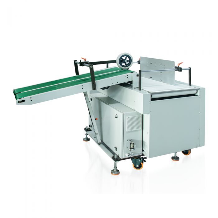 HX221 Book Stacker adopts the dual belt book stacking structure, the book output direction can be changed the direction in be left and right 90 degrees, this stacker can be applied flexibly, connecting with perfect binding, hardcover book binding, three-knife trimmer, or other binding machines' delivery, adjustable output height, and easy operation, great cost performance.